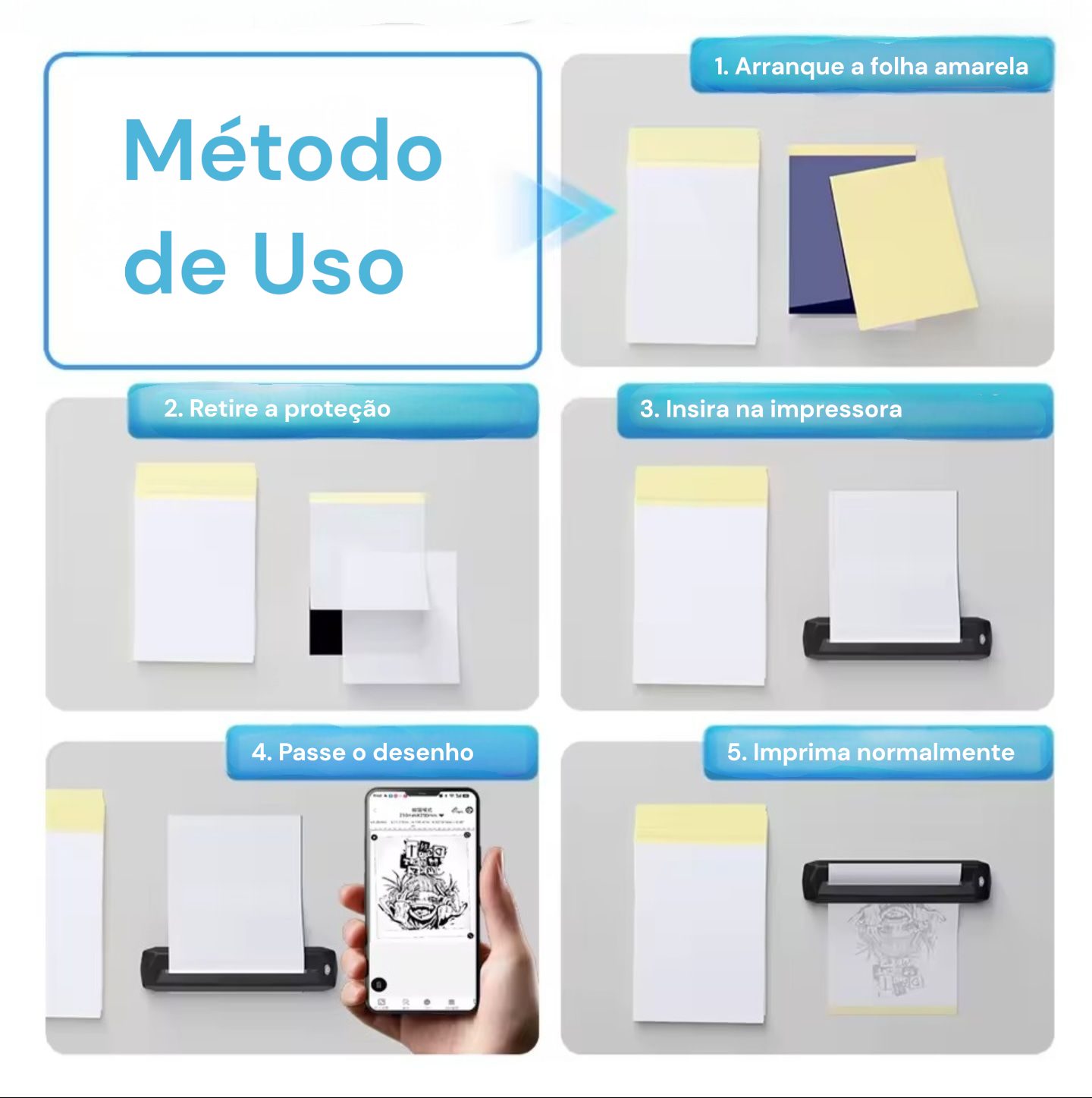 O Papel Transfer Copia Termocopiadora é um Papel de Transferência de Tatuagem Tamanho A4.